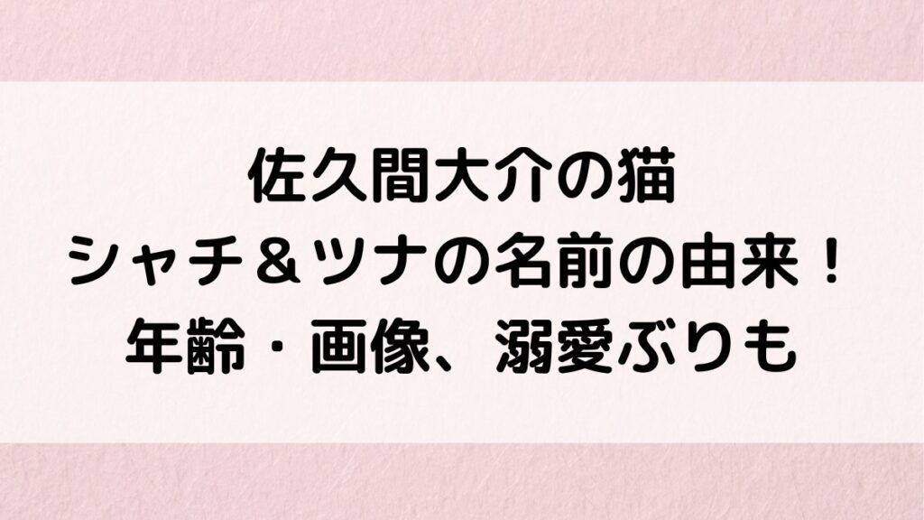 佐久間大介の猫の名前/シャチ&ツナの由来はふっかさん?年齢・画像、溺愛ぶりにファンの反応も!